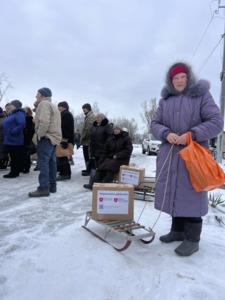 - Bildunterschrift:Verteilung von Lebensmittelpakete zur Vorbereitung auf den Winter