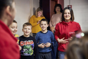 - Bildunterschrift:Kinder in der Ukraine erfahren durch psychologisch unterstütztes Spiel dringend benötigte mentale Entlastung.